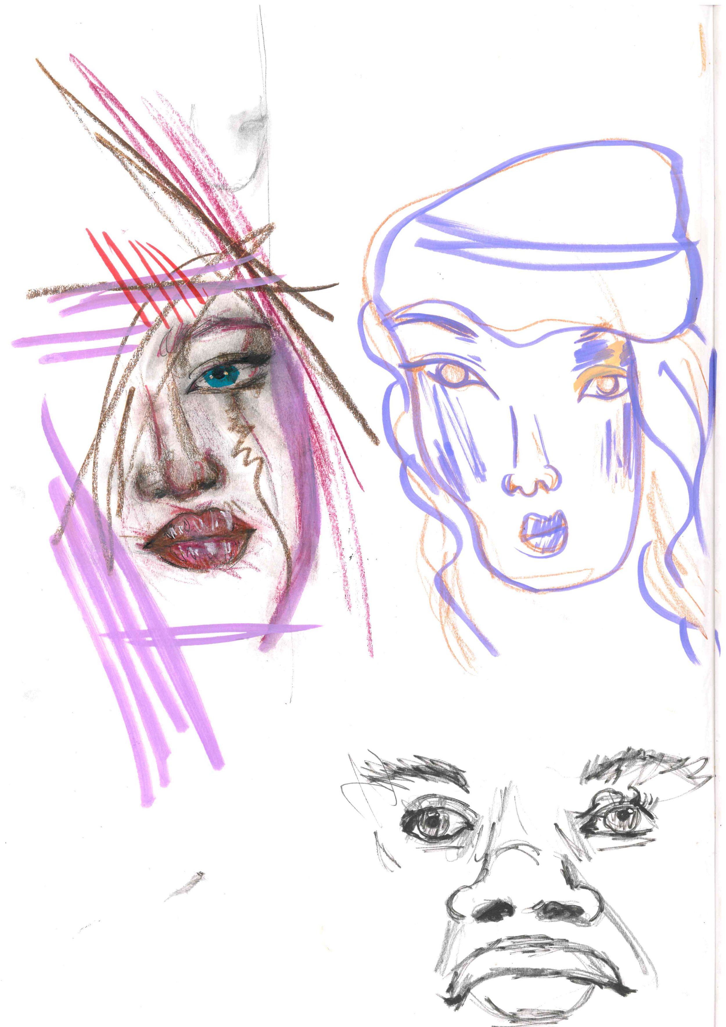 All Artwork shown below is A3 Sketchbook work scanned. Media used: Pencils, Markers, Collage, Paint, Ink, Fine liner etc.