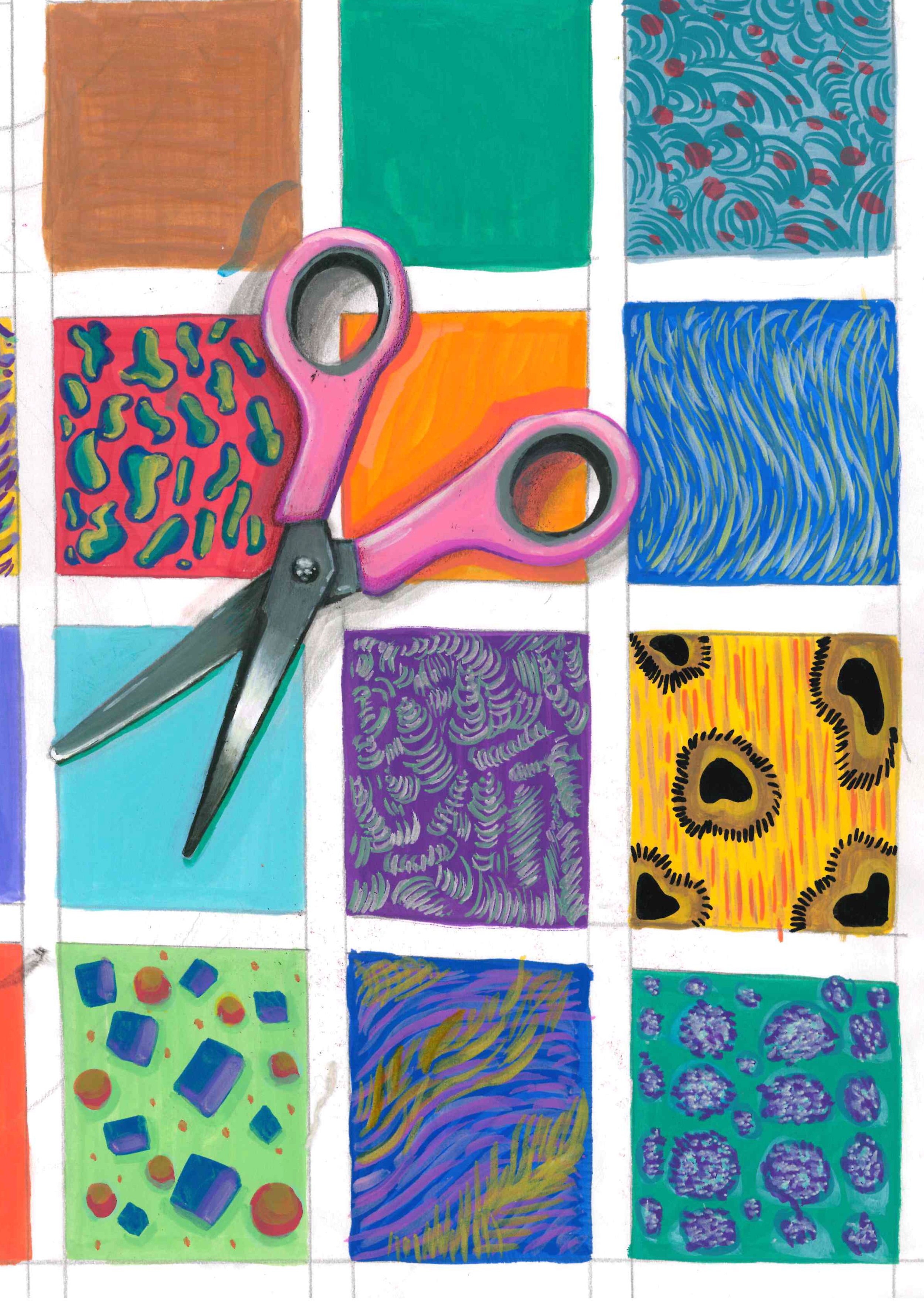 Here are several process examples spanning across various years, showcasing diversity in texture, tools, themes, and art styles. Through my process work, I am adept at examining an idea's feasibility for application and capturing the overall essence of the project. The series encompasses quick sketches to complex pieces, highlighting the distinctiveness of each process depending on the project. Notably, there's a discernible variance in the approach to color and textures among these images, underscoring the unique nature of each process. Despite its potential to appear chaotic, the essence of the process deserves appreciation in its own right.